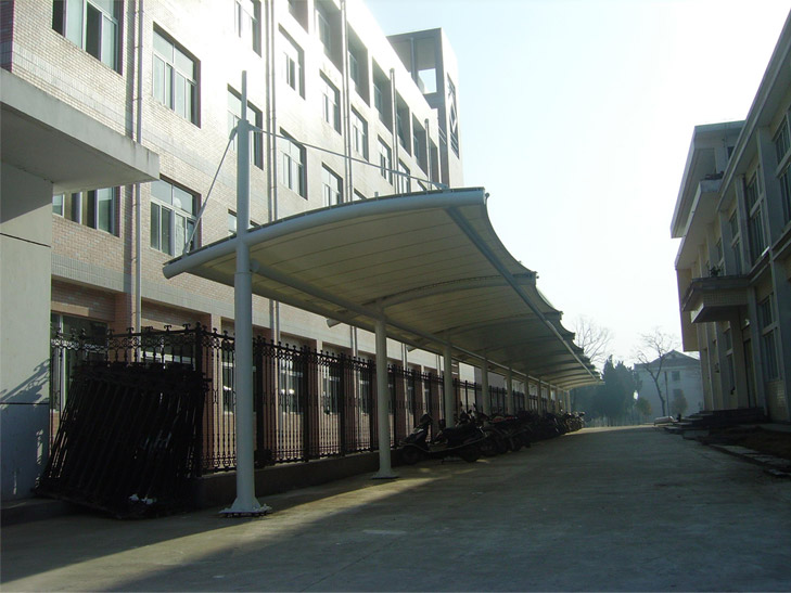 以鋼構(gòu)或是集成材構(gòu)成的屋頂骨架后,在其上方張拉膜材的構(gòu)造形 式,下部支撐結(jié)構(gòu)安定性高,因屋頂造型比較單純,開口部不易受限制, 且經(jīng)濟效益高等特點,廣泛適用于任何大,小規(guī)模的空間。